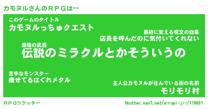 | ファンタジー風あだ名 | 『カモフェル』『エターナルカモヌルー』 |