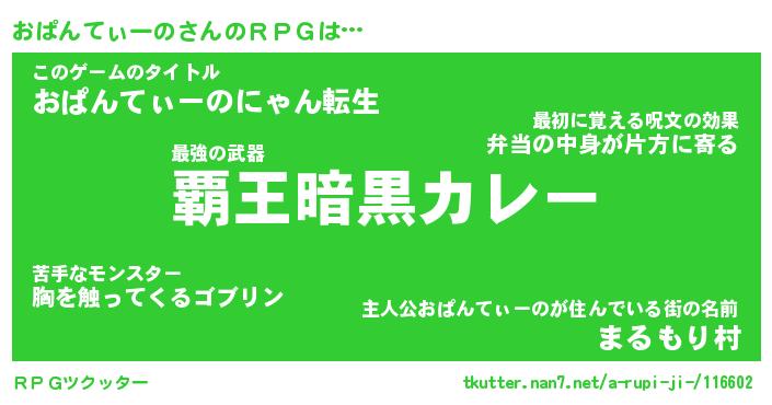 | 猫 | 猫の名前『おぱんてぃーのーにゃん』 |