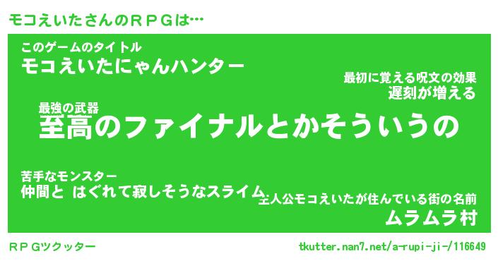 | ヒーロー風カッコイイあだ名 | 『スーパーモコエイタ』『幻影騎士モコ』 |