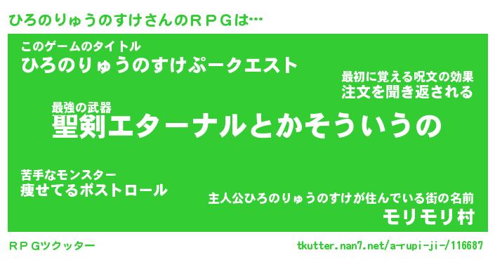 | 伝説のあだ名 | 『伝説の傭兵ひろのりゅうのすけ』 |