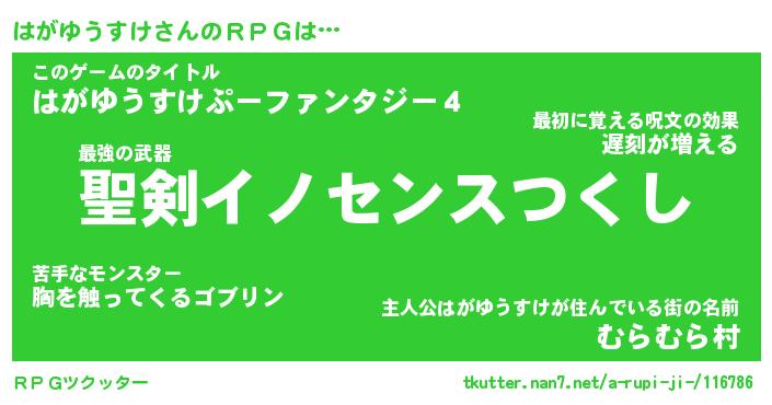| 伝説のあだ名 | 『伝説のスナイパーはがゆうすけ』 |