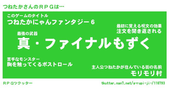 | ファンタジー風あだ名 | 『ツネフェル』『エターナルツネタカー』 |