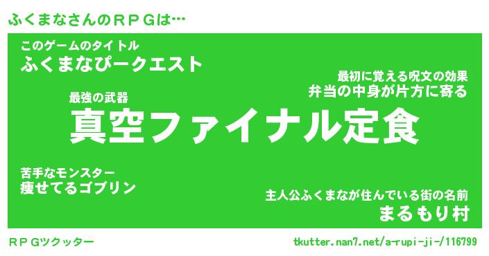 | 男性向けラノベタイトル風あだ名 | 『フクマナアートオンライン』 |