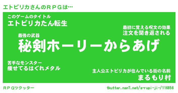 | 肩書あだ名 | 『エトピリカCEO』『エトピリカ総理大臣』 |