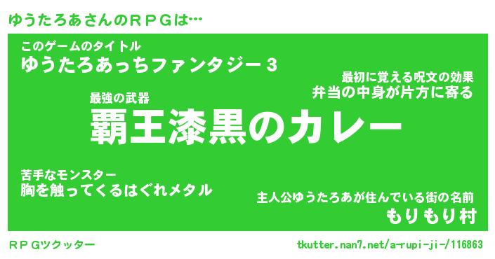 | ファンタジー風あだ名 | 『ユウフェル』『エターナルユウタロアー』 |