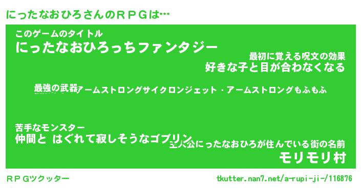 | 男性向けラノベタイトル風あだ名 | 『にったなおひろの憂鬱』 |