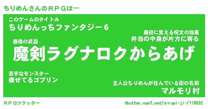 | ファンタジー風あだ名 | 『チリフェル』『エターナルチリメンー』 |