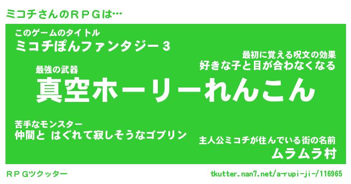 | 胡散臭い通販商品みたいなあだ名 | 『億万長者になれる水晶球…その名も「ミコチ」』 |