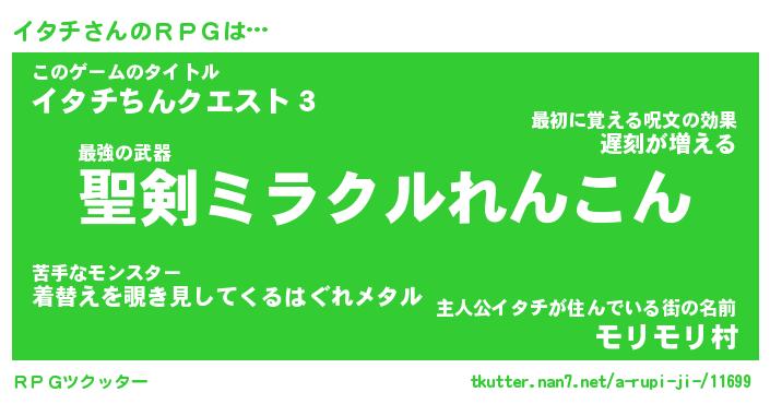 | ファンタジー風あだ名 | 『イタフェル』『エターナルイタチー』 |