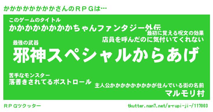 | 男性向けラノベタイトル風あだ名 | 『カカカカカカカカアートオンライン』 |