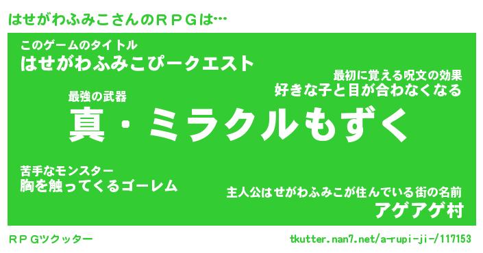 | 伝説のあだ名 | 『封印されし竜騎士はせがわふみこ』 |