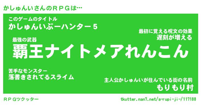 | 男性向けラノベタイトル風あだ名 | 『カシュンイアートオンライン』 |