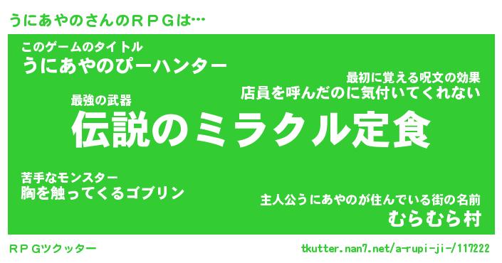 | 料理風あだ名 | 『節約★うにあやのと油揚げの玉子丼』 |