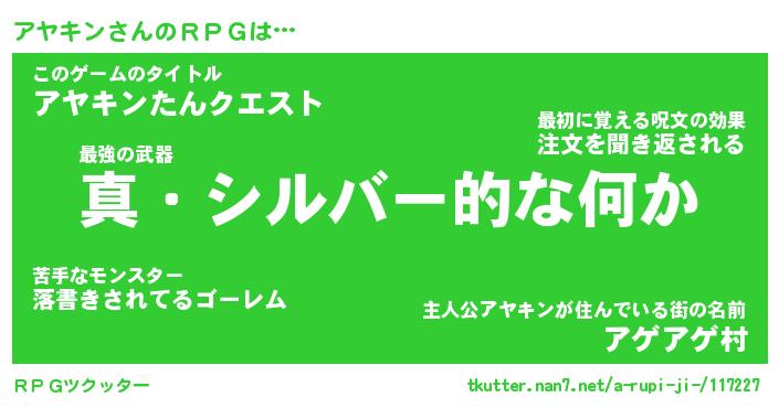 | 男性向けラノベタイトル風あだ名 | 『アヤキンアートオンライン』 |