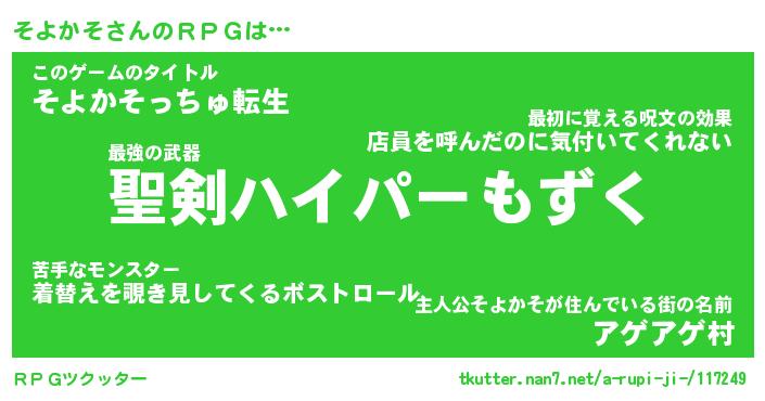 | ファンタジー風あだ名 | 『ソヨフェル』『エターナルソヨカソー』 |
