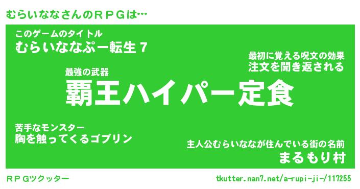 | 男性向けラノベタイトル風あだ名 | 『ムライナナアートオンライン』 |