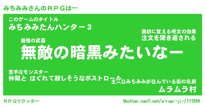 | 男性向けラノベタイトル風あだ名 | 『ミチミミアートオンライン』 |
