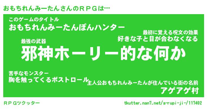 | 男性向けラノベタイトル風あだ名 | 『オモチレンミータンアートオンライン』 |