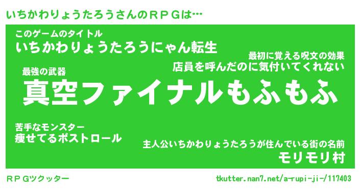 | 男性向けラノベタイトル風あだ名 | 『イチカワリョウタロウアートオンライン』 |