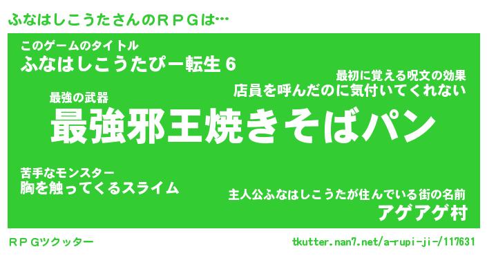 | 男性向けラノベタイトル風あだ名 | 『フナハシコウタアートオンライン』 |
