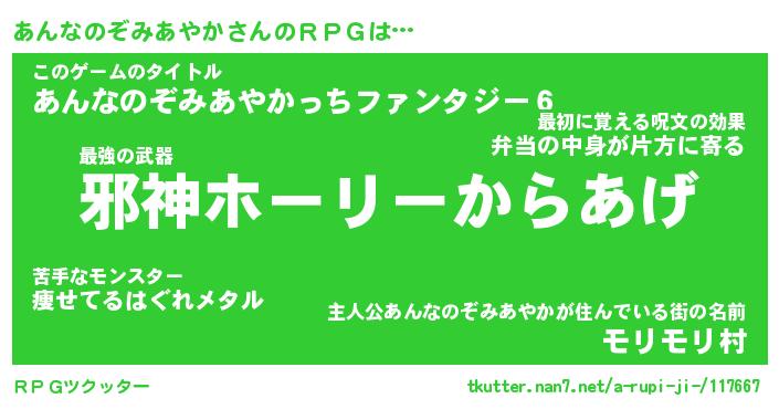 | 伝説のあだ名 | 『封印されし傭兵あんなのぞみあやか』 |