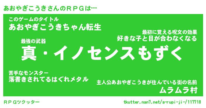 | 伝説のあだ名 | 『封印されしスナイパーあおやぎこうき』 |