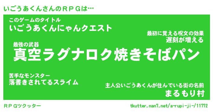 | 男性向けラノベタイトル風あだ名 | 『イゴウアクンアートオンライン』 |