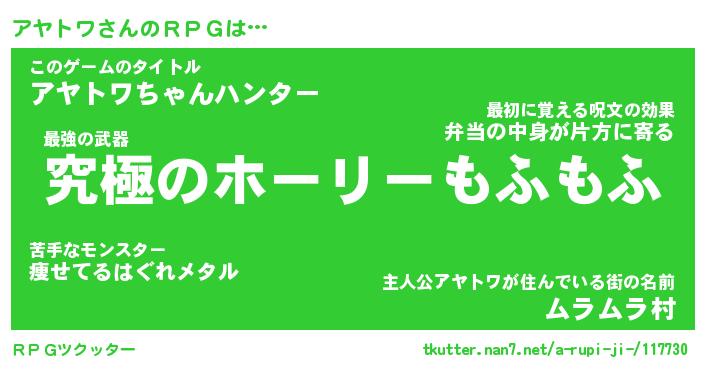 | ファンタジー風あだ名 | 『アヤフェル』『エターナルアヤトワー』 |