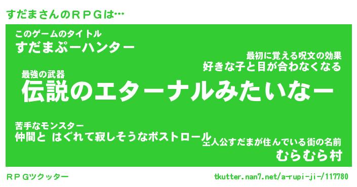 | 男性向けラノベタイトル風あだ名 | 『すだまの憂鬱』 |