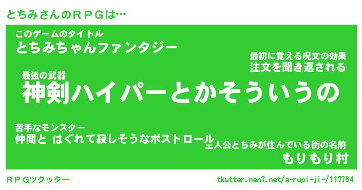 | 伝説のあだ名 | 『不死鳥の竜騎士とちみ』 |