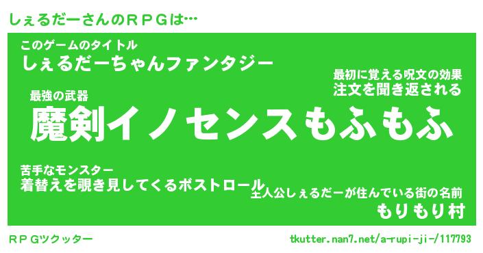 | 胡散臭い通販商品みたいなあだ名 | 『必ず成功する霊験あらたかなお札…その名も「しぇるだー」』 |