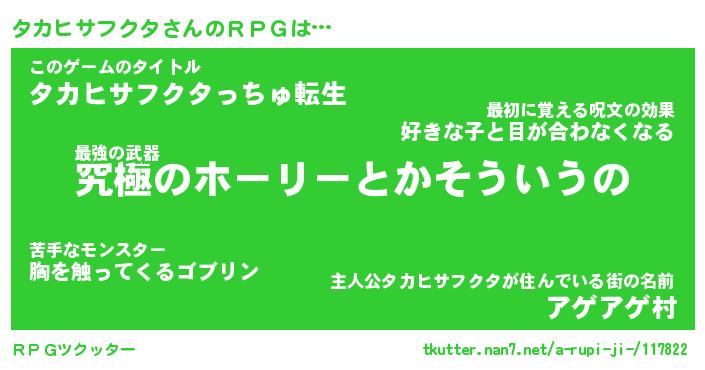 | 男性向けラノベタイトル風あだ名 | 『タカヒサフクタの憂鬱』 |