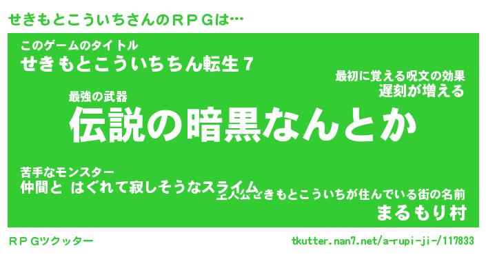 | 男性向けラノベタイトル風あだ名 | 『せきもとこういちの憂鬱』 |