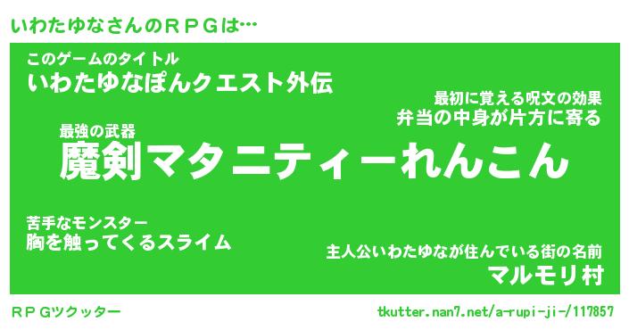 | ファンタジー風あだ名 | 『イワフェル』『エターナルイワタユナー』 |