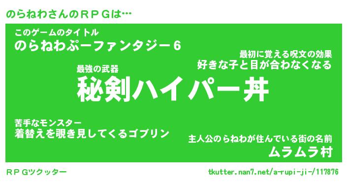 | 男性向けラノベタイトル風あだ名 | 『のらねわの憂鬱』 |