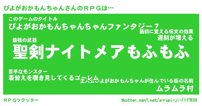 | 胡散臭い通販商品みたいなあだ名 | 『必ず成功する霊験あらたかなお札…その名も「ぴよがおかもんちゃん」』 |