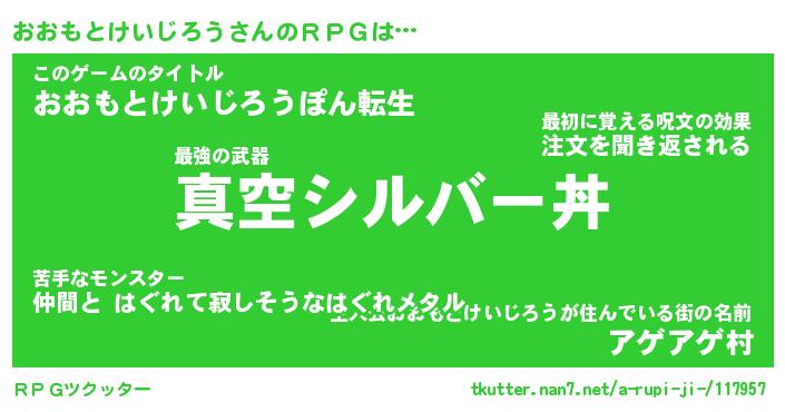 | 胡散臭い通販商品みたいなあだ名 | 『億万長者になれる水晶球…その名も「おおもとけいじろう」』 |