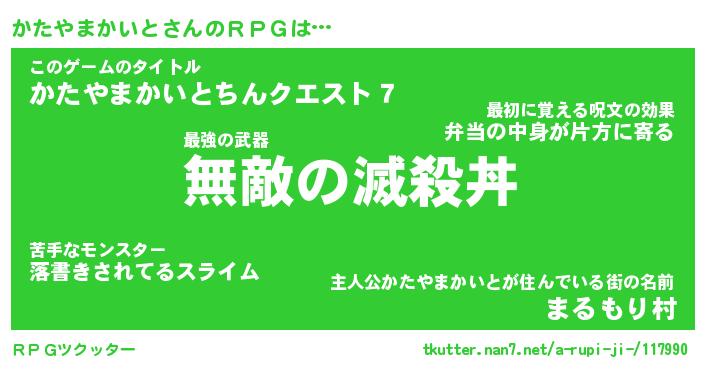 | 男性向けラノベタイトル風あだ名 | 『カタヤマカイトアートオンライン』 |