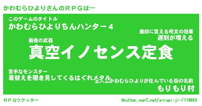 | 伝説のあだ名 | 『封印されしスナイパーかわむらひより』 |