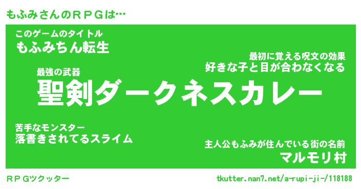| ヘコむあだ名 | 『もふにゅー』『牛乳』『もふぷりん』 |