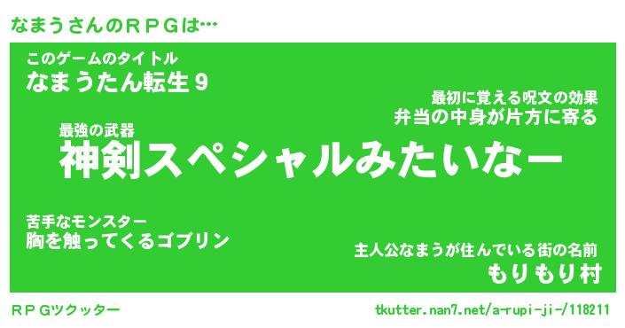 | ヒーロー風カッコイイあだ名 | 『スーパーナマウ』『ウルトラなまうマン』 |