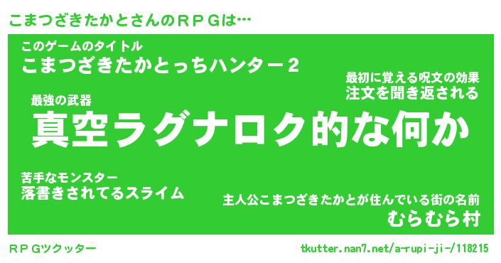 | 伝説のあだ名 | 『封印されし竜騎士こまつざきたかと』 |