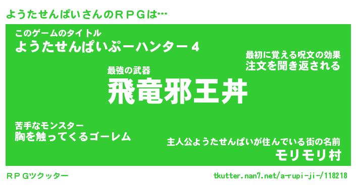 | 男性向けラノベタイトル風あだ名 | 『ヨウタセンパイアートオンライン』 |