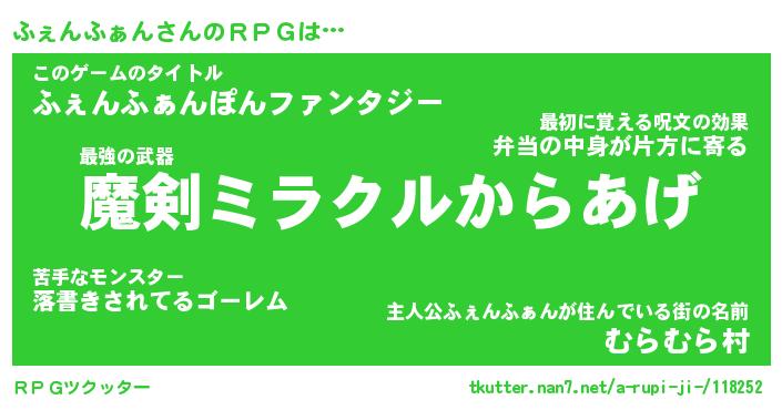 | ファンタジー風あだ名 | 『フェフェル』『ファントムフェス』 |