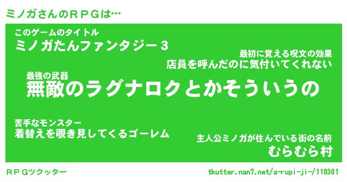 | 男性向けラノベタイトル風あだ名 | 『ミノガアートオンライン』 |