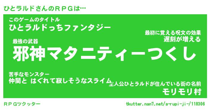 | 伝説のあだ名 | 『封印されしスナイパーひとラルド』 |
