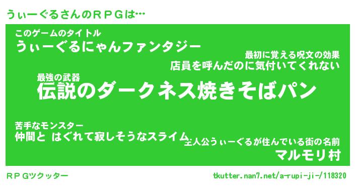 | 男性向けラノベタイトル風あだ名 | 『うぃーぐるの憂鬱』 |