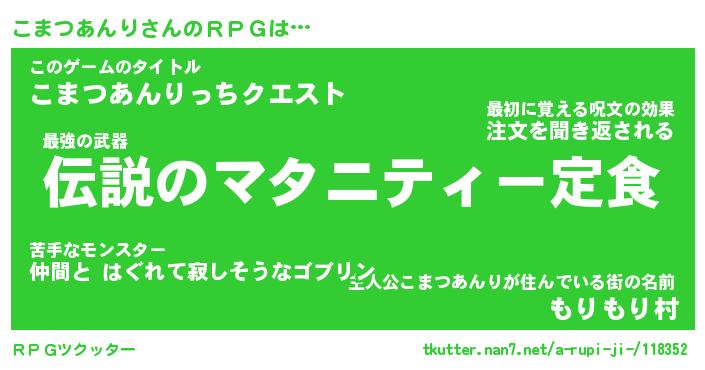 | 女子向けラノベタイトル風あだ名 | 『こまつあんり姫と円卓の騎士』 |