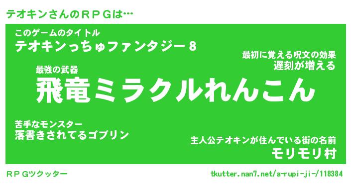 | 男性向けラノベタイトル風あだ名 | 『テオキンアートオンライン』 |