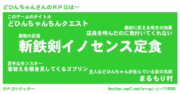 | 男性向けラノベタイトル風あだ名 | 『どひんちゃんの憂鬱』 |